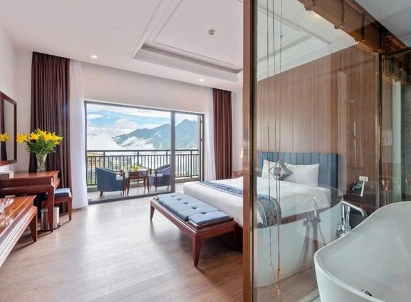 – Miễn phí sử dụng bể bơi vô cực, phòng gym và checkin Eden (điểm checkin mây trời với toàn cảnh view thung lũng Mường Hoa).