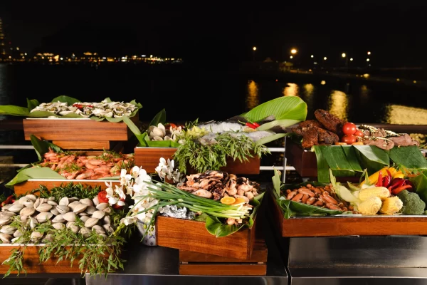 18h30 – 20h00: Thưởng thức bữa tối Á – Âu thượng hạng tại nhà hàng sang trọng trên du thuyền.