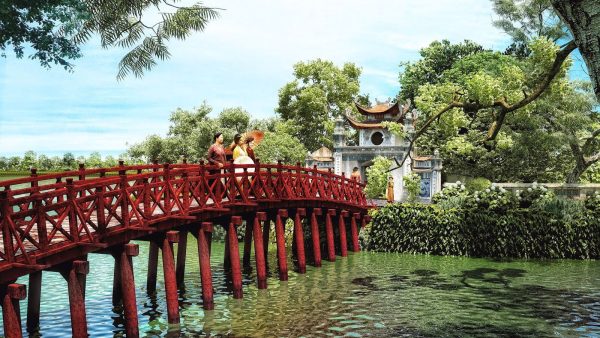 - Đền Ngọc Sơn – Cầu Thê Húc: Nằm giữa Hồ Hoàn Kiếm, Đền Ngọc Sơn thờ Trần Hưng Đạo và các danh nhân lịch sử, là một di tích văn hóa đầy ý nghĩa. Cầu Thê Húc với màu đỏ rực rỡ, uốn cong mềm mại, là điểm check-in nổi tiếng, thu hút du khách khi đến du lịch tại Hà Nội.
